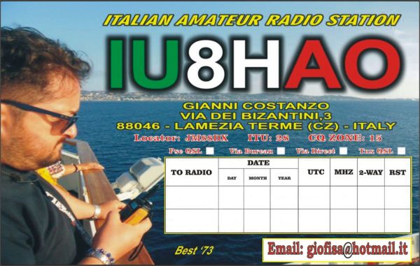 IU8HAO GianniHi, I'm Gianni from Italy (IT) JM88DX, radio amateur with IU8HAO callsign.
