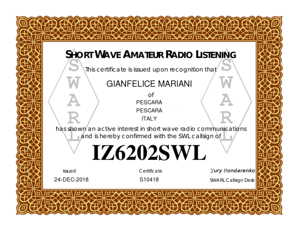 Hi, I'm Gianfelice from JN72CL, swl radio operator with IZ6202SWL callsign.